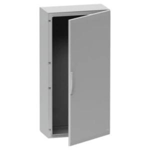 Podłogowa obudowa poliestrowa firmy Schneider Electric o numerze katalogowym NSYPLA1073G i wymiarach 1000x750x320mm (szer.x wys.x gł.). Pojedyncze drzwi pełne. Instalacja wewnątrz pomieszczeń. Do użytku zewnętrznego należy dodatkowo zainstalować daszek. Obudowy z serii Thalassa PLA wykonane są z poliestru wzmocnionego włóknem szklanym, formowane na gorąco. Charakteryzują się wysoką odpornością na korozję, w trudnych warunkach zachowują swoje właściwości mechaniczne i izolacyjne. W standardzie wyposażone są w klamkę z 5 mm blokadą z podwójnym prętem. Drzwi otwierają się do 120°. Ich stopień ochrony to IP65 zgodnie z IEC 60529. Obudowy są w kolorze szarym RAL7035. Elementy szaf mają doskonałe wykończenie po obu stronach i mogą zawierać liczne otwory na wkładki i akcesoria montażowe lub do prowadzenia kabli. Etykieta Green Premium jest zobowiązaniem firmy Schneider Electric do dostarczania produktów o najwyższej w swojej klasie ekologiczności. Green Premium obiecuje zgodność z najnowszymi przepisami, przejrzystość w zakresie wpływu na śr odowisko, a także produkty o obiegu zamkniętym i niskiej emisji CO2.