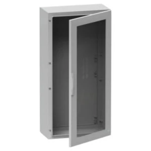 Podłogowa obudowa poliestrowa firmy Schneider Electric o numerze katalogowym NSYPLA753TG i wymiarach 750x500x320mm (szer.x wys.x gł.). Podwójne drzwi transparentne. Instalacja wewnątrz pomieszczeń. Do użytku zewnętrznego należy dodatkowo zainstalować daszek. Obudowy z serii Thalassa PLA wykonane są z poliestru wzmocnionego włóknem szklanym, formowa ne na gorąco. Charakteryzują się wysoką odpornością na korozję, w trudnych warunkach zachowują swoje właściwości mechaniczne i izolacyjne. W standardzie wyposażone są w klamkę z 5 mm blokadą z podwójnym prętem. Drzwi otwierają się do 120°. Ich stopień ochrony to IP65 zgodnie z IEC 60529. Obudowy są w kolorze szarym RAL7035. Elementy szaf mają dosko nałe wykończenie po obu stronach i mogą zawierać liczne otwory na wkładki i akcesoria montażowe lub do prowadzenia kabli. Etykieta Green Premium jest zobowiązaniem firmy Schneider Electric do dostarczania produktów o najwyższej w swojej klasie ekologiczności. Green Premium obiecuje zgodność z najnowszymi przepisami, przejrzystość w zakresie wpływu na środowisko, a także produkty o obiegu zamkniętym i niskiej emisji CO2.