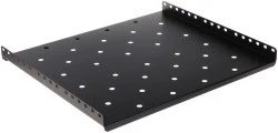 Półka 1U 150mm rack 19, 2 pkt mocowania, perforowana, czarna