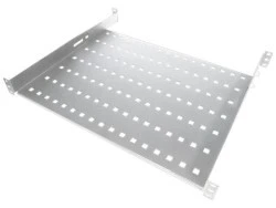 Półki pasujące do szaf w standardzie 19". Stanowią podstawę do instalacji urządzeń elektronicznych wolno stojących w szafach teleinformatycznych. Wykonane są z blachy stalowej malowanej proszkowo w kolorze szarym. Podstawa perforowana, cztery punkty mocowania.