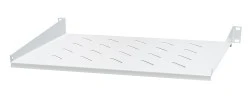 W podanym zakresie montażu, otwory montażowe umożliwiają montaż półek przy różnych ustawieniach profili montażowych. Półki mocowane z przodu i z tyłu do bocznych części profili montażowych (z boku). Wykonane z blachy stalowej, malowane proszkowo standardowo RAL7044, posiadają otwory perforacyjne umożliwiające lepszą cyrkulację powietrza w szafie.