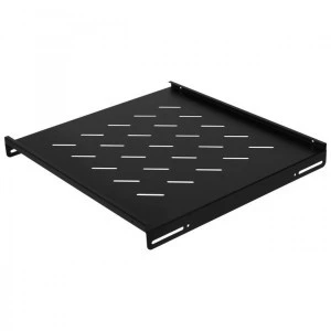 Wysokiej jakości stal malowana proszkowo z jakiej wykonano półkę zapewnia jej wytrzymałość, a mocowanie w czterech punktach do bocznych profili - stabilność konstrukcji. W celu zapewnienia odpowiedniego odprowadzania ciepła z urządzeń dno półki zostało perforowane.