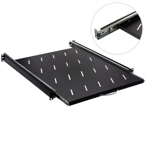 Półkę można zamontować na szynach o rozstawie od 550 do 900 mm. Regulacja rozstawu montażowego jest w pełni płynna i nie wymaga dodatkowych prac poza wysunięciem na odpowiednią długość.