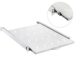 Półkę można zamontować na szynach o rozstawie od 550 do 900 mm. Regulacja rozstawu montażowego jest w pełni płynna i nie wymaga dodatkowych prac poza wysunięciem na odpowiednią długość.