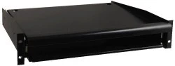 Nazwa: Półka wysuwana pod klawiaturę i myszkę Przeznaczenie Półka wysuwana pod klawiaturę i myszkę przeznaczona jest do szaf RACK-owych stojących w których zaistniała potrzeba zainstalowania komputera do monitorowania / konfiguracji urządzeń wchodzących w skład danego systemu. Wymiary montażowe 19" x 2U x 337mm montaż doczołowy, w komplecie 4 śruby M6 + koszyki Wymiary 482 x 88 x 356 [+/-2 mm] Obciążenie statyczne 20kg Szyna prowadnice: częściowy wysuw Montaż RACK 19" Półka 407 x 300 [mm] Wykonanie stal walcowana na zimno SPCC, 1.2mm, RAL9004 (czarny), metalowa Gwarancja 2 lata
