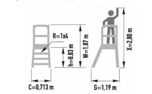 Mocna konstrukcja, szerokie stopnie, bardzo duży podest (56x77 cm) oraz wysoka poręcz zabezpieczająca.