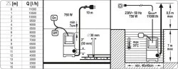 automatyczny przełącznik pływakowy na bocznej prowadnicy reaguje na zmieniający się poziom wody już od 5 mm – pompa włącza się samoczynnie, zapewniając wypompowanie całej wody, bez konieczności nadzorowania jej pracy