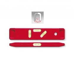 Cechy wyróżniające: profesjonalna poziomica kompaktowa z tworzywa sztucznego bawarskiej marki BMI, najwyższa jakość wykonania gwarantuje długoletni okres użytkowania, trzy libelle pozioma, pionowa i kątowa zamontowane na stałe w unikalnej technologii, trwale zaznaczone wyraźne kreski centrujące, silne magnesy na powierzchni pomiarowej, libelle z pleksiglasu odporne na uderzenia, przystosowane do pracy w trudnych warunkach, idealnie okrągła bańka powietrza jednoznacznie wskazuje błąd spoziomowania, wyrazisty kolor cieczy ułatwia pomiary w różnych warunkach oświetleniowych.