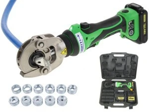 Profesjonalna praska akumulatorowa EK-300K został zaprojektowany i zbudowany pod kątem najcięższych prac elektroinstalacyjnych w trudnodostępnych miejscach. Stabilna i przystosowana do użytku zewnętrznego i wewnętrznego konstrukcja zapewnia obsługę kabli i przewodów w zakresie 6-300 mm2. Kolumnowa konstrukcja to najnowszy model serii 18V z wbudowanym serwisowym systemem umożliwiającym odczytanie informacji o poprawności zaprasowania i ilości wykonanych cykli. Nowy napęd zapewnia długotrwałą żywotność i fonkcjonalność nawet w najtrudniejszych warunkach pracy. Zasilanie akumulatorowe kompatybilne z systemem Dewalt i Stanley.