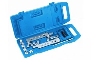 Praska do ręcznego rozszerzania rur wykonanych ze stali, metali kolorowych, aluminium oraz tworzyw sztucznych. Do wykonywania stożkowych kołnierzy połączeniowych o kącie 90°. Zestaw przeznaczony jest do prac instalatorskich, motoryzacyjnych, budowlanych.