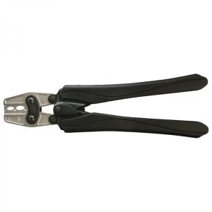 Praska do zaciskania izolowanych końcówek kablowych, wykonanie z przekładnią w celu lepszego przeniesienia nacisku, z możliwością odblokowania zapadki, zacisk owalny.