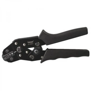Praska do końcówek tulejkowych, wersja krótka, poręczny kształt z 20% zakrzywieniem głowicy, ze zwalnianą blokadą wymuszoną, nacisk zaciskowy regulowany, zacisk trapezowy.