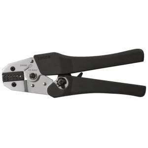 Praska do końcówek tulejkowych, poręczny kształt z 20% zakrzywieniem głowicy, ze zwalnianą blokadą wymuszoną, nacisk zaciskowy regulowany, zacisk trapezowy