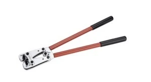Szczypce zaciskowe, zaciskanie karbów z wbudowanymi, obrotowymi tarczami profilowymi, przekładnia dźwigniowa, do rurowych końcówek kablowych i łączników