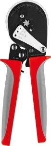 Praska ręczna T 16S Praska do końcówek: - tulejkowych bez izolacji (typ TA) - tulejkowych z izolacją (typ TE, TV) Zakres przewodów od 0,08 ÷ 16 mm2. Cechy użytkowe: - sześciokątna forma zaprasowania - ruchoma wkładka centrująca do dokładnego umieszczenia końcówek o małym przekroju - dwukomponentowa rękojeść zapobiega ześlizgnięciu się dłoni - mechanizm zapadkowy umożliwia łatwe zaprasowywanie przy użyciu minimalnej siły Długość: 215 mm; Masa: 0,55 kg