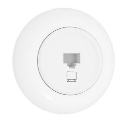 Gniazdo telekomunikacyjne Rj45do podłączania urządzeń komputerowych w sieci domowej. Okrągłegniazdo pojedyncze z ramkąidealnie pasuje zarówno do nowoczesnych wnętrz w stylu loftowym, jak i do pomieszczeń urządzonych w stylu retro.