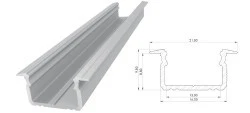 Szary (kolor); Profil aluminiowy surowy; Wys. cał. 9.80mm Dł. 1000mm; Szer. max. tamy 12mm
