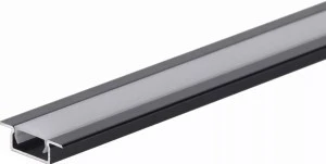 Wpuszczany profil aluminiowy z kołnierzem maskującym nierówne krawędzie powstałe po frezowaniu. Zaprojektowany z myślą o niewielkiej głębokości montażowej (zaledwie 6,2mm)