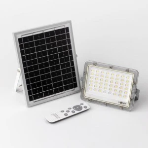 Opis produktu: Naświetlacz LED z Panelem Solarnym (symbol dodatkowy NP-S50) to innowacyjne rozwiązanie oświetleniowe, które łączy w sobie zaawansowaną technologię LED oraz ekologiczne zasilanie energią słoneczną. Dzięki swojej wysokiej wydajności i funkcjonalności, idealnie nadaje się do oświetlania ogrodów, podwórek, placów budowy czy innych przestrzeni zewnętrznych. Specyfikacje techniczne: Moc: 50W Barwa światła: 4000K (neutralna biel) Strumień świetlny: 400 lumenów Akumulator: 5000mAh Czas ładowania: 5-8 godzin Czas pracy: 1-6 godzin Panel solarny: 5V 6W Stopień szczelności: IP65 (odporność na pył i wodę) Czujnik zmierzchu: Tak Kąt świecenia: 90° CRI (wskaźnik oddawania barw): ≥70 Rodzaj diod: LED SMD Cechy i zalety: Energia słoneczna: Naświetlacz jest zasilany panelem solarnym o mocy 6W, co zapewnia ekologiczne i ekonomiczne rozwiązanie oświetleniowe. Niezależność energetyczna: Dzięki zasilaniu słonecznemu, naświetlacz działa bez konieczności podłączania do sieci elektrycznej, co obniża koszty eksploatacji. Wysoka wydajność: Moc 50W i strumień świetlny 400 lumenów gwarantują efektywne oświetlenie różnych przestrzeni zewnętrznych. Akumulator o dużej pojemności: Akumulator 5000mAh zapewnia długi czas pracy po pełnym naładowaniu, nawet do 6 godzin. Szybkie ładowanie i długi czas pracy: Czas ładowania wynoszący 5-8 godzin pozwala na szybkie przygotowanie naświetlacza do użytku, a czas pracy od 1 do 6 godzin zapewnia niezawodne oświetlenie przez całą noc. Czujnik zmierzchu: Automatyczne włączanie i wyłączanie naświetlacza w zależności od poziomu światła dziennego zapewnia wygodę i oszczędność energii. Odporność na warunki atmosferyczne: Stopień szczelności IP65 zapewnia ochronę przed pyłem i wodą, co pozwala na bezpieczne użytkowanie na zewnątrz, niezależnie od pogody. Solidna konstrukcja: Wysokiej jakości materiały i szczelna obudowa gwarantują trwałość i odporność na uszkodzenia mechaniczne. Naświetlacz LED z Panelem Solarnym (NP-S50) to doskonały wybór dla tych, którzy potrzebują wydajnego, niezawodnego i ekologicznego źródła światła na zewnątrz. Jego zaawansowane funkcje i solidna konstrukcja sprawiają, że jest idealnym rozwiązaniem do szerokiego zakresu zastosowań zewnętrznych.