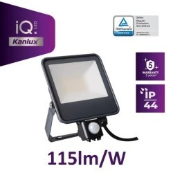 Naświetlacz LED, zasilanie 200-240V~;50Hz, moc 30W, kolor czarny, źródło światła LED SMD (w komplecie), Tc 4000K, strumień świetlny 3450lm, IP 44, zakres dopuszczalnej temperatury otoczenia -30 +50°C; wyposażony w czujnik ruchu PIR.