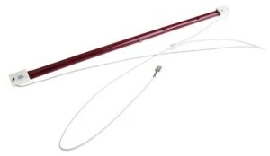 Należy uważać, aby nie dotknąć rury kwarcowej gołymi rękami. Podczas pracy sprężarki olej ze skóry może niekorzystnie wpływać na kwarc i skrócić żywotność lampy. Upewnij się również, że lampa jest prawidłowo umieszczona w uchwycie. Lampy podczerwieni Ruby. Lampy podczerwone Ruby redukują oślepianie oczu i są dostępne w długościach od 118 do 350 mm. Lampy te są proste, skuteczne, niezawodne i ekonomiczne w eksploatacji. Są one używane do suszenia procesów, jak również do ogrzewania pomieszczeń i obszarów osłoniętych na zewnątrz. Mogą to być restauracje, kawiarnie, tarasy, fabryki, hale sportowe, stadiony, kościoły, magazyny, garaże itp. Lampy można ściemniać, tak że ich moc, jako regulacja temperatury, może być regulowana przez odpowiedni regulator mocy (nie jest dostarczany). Wykonane z domieszkowego kwarcu o średnicy 10 mm. Praktycznie natychmiastowe promieniowanie ciepła po włączeniu zasilania. Niski poziom oślepiania Ekonomiczna do pracy Odpowiednie do uniwersalnych orientacji montażu