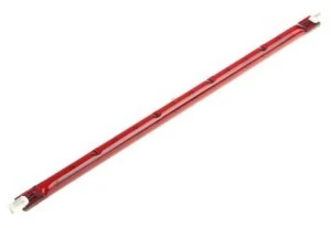 Należy uważać, aby nie dotknąć rury kwarcowej gołymi rękami. Podczas pracy sprężarki olej ze skóry może niekorzystnie wpływać na kwarc i skrócić żywotność lampy. Upewnij się również, że lampa jest prawidłowo umieszczona w uchwycie. Lampy podczerwieni Ruby. Lampy podczerwone Ruby redukują oślepianie oczu i są dostępne w długościach od 118 do 350 mm. Lampy te są proste, skuteczne, niezawodne i ekonomiczne w eksploatacji. Są one używane do suszenia procesów, jak również do ogrzewania pomieszczeń i obszarów osłoniętych na zewnątrz. Mogą to być restauracje, kawiarnie, tarasy, fabryki, hale sportowe, stadiony, kościoły, magazyny, garaże itp. Lampy można ściemniać, tak że ich moc, jako regulacja temperatury, może być regulowana przez odpowiedni regulator mocy (nie jest dostarczany). Wykonane z domieszkowego kwarcu o średnicy 10 mm. Praktycznie natychmiastowe promieniowanie ciepła po włączeniu zasilania. Niski poziom oślepiania Ekonomiczna do pracy Odpowiednie do uniwersalnych orientacji montażu