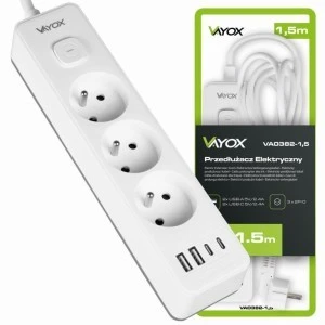 Przedłużacz 1,5MB 3GN+0 3x1,5mm 16A + 2x USB‑A + 2x USB‑C VA0382‑1,5 Vayox