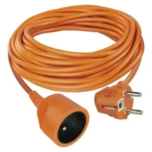 Uniwersalny przedłużacz z jednym gniazdem do użytku wewnętrznego i zewnętrznego. Przesłony ochronne dla zwiększenia bezpieczeństwa. Odpowiedni do narzędzi i sprzętu budowlanego.