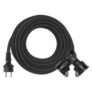 Przedłużacz ogrodowy 15 m / 2 gniazda / czarny / guma / 230 V / 1,5 mm2.