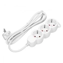 Biały przedłużacz z 3 gniazdami, 2P+Z (schuko) i kablem o długości 3m. Służy do podłączenia kilku urządzeń do jednego źródła prądu.