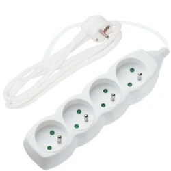 Uniwersalny przedłużacz z uziemieniem wykonany z tworzywa sztucznego.