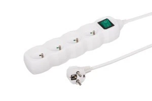 Przedłużacz 4‑gniazdowy, 1,5m biały, z wyłącznikiem, 3x1,0mm OWY 35415