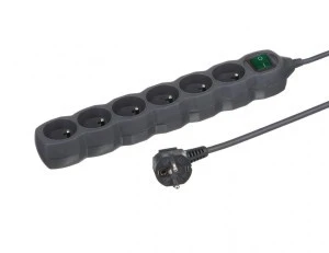 Przedłużacz 6 ‑gniazdowy, 3m grafit, z wyłącznikiem, 3x1,0mm OWY / 24204