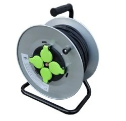 Przedłużacz zwijany jednofazowy na bębnie wykonany jest z bardzo solidnego metalu. Wbudowany wyłącznik termiczny 16A chroni przed przegrzaniem i uszkodzeniem urządzenia. Przedłużacz wykonany jest w stopniu szczelności IP44, posiada klapki ochronne na gniazdach.