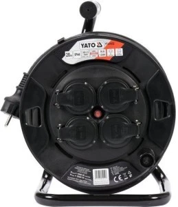 Przedłużacz bębnowy budowlany YT-81052 o długości 20 metrów z 4-ma pyło i bryzgoszczelnymi gniazdami, zabezpieczeniem termicznym oraz zabezpieczeniem przed dziećmi. Przewód w osłonie z gumy naturalnej nawinięty na bęben wykonany z wytrzymałego tworzywa sprawia, że przedłużacz może być stosowany wewnątrz jak i na zewnątrz, np. na budowie, w ogrodzie, na placach przed zakładami produkcyjnymi. Bęben osadzony na solidnym metalowym stelażu z ergonomiczną rękojeścią. Rączka umieszczona przy krawędzi bębna przyspiesza zwijanie, a gumowy element przymocowany do przewodu kilka centymetrów przed wtyczką umożliwia zaczepienie go np. do krawędzi bębna, co znacznie ułatwia przechowanie i transport zwiniętego przedłużacza.