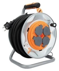Przedłużacz wyposażony jest w zintegrowaną prowadnicę Guide Cable. Rozwiązanie to sprawia, że 25 metrów grubego przewodu układa się równomiernie na całej szerokości bębna. Zapobiega to plątaniu się kabla, blokowaniu bębna i pozwala na zwijanie bez konieczności ręcznego poprawiania zwojów.