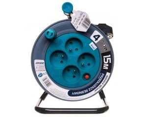 Powyższym produktem jest nowoczesny przedłużacz bębnowy. Jest to model Mini. Urządzenie zostało wyposażone w cztery gniazda. Każde z nich to model z bolcem. Z całą pewnością w trakcie użytkowania tego modelu warto wziąć pod uwagę jego parametry elektryczne. Każde z gniazd tego przedłużacza ma bowiem wartość 230 V. Urządzenie pracuje przy prądzie znamionowym o wartości 10 A. Nie mniejsze znaczenie mają również wymiary tego urządzenia. Długość przewodu zasilającego jest bowiem równa 15 m, a przekrój poprzeczny żył wynosi 1mm2. Przedłużacz wykonano z wysokiej jakości, starannie dobranego i wyselekcjonowanego tworzywa sztucznego. Urządzenie jest dostępne w ciekawym i wyrazistym turkusowym kolorze.