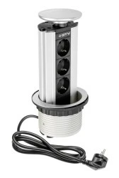 Gniazdo wpuszczane w blat 3x250V w niklowanej obudowie z ładowarką 2xUSB i przewodem 1,8m OR-AE-1364