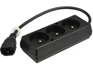 Kabel ten to przejściówka pomiędzy złączem UPSowym C14 a tradycyjnym gniazdem prądowym. Szczególnie przydatna do zasilaczy UPS wyposażonych tylko w gniazda C13, a gdzie potrzeba doprowadzenia jest kabla zasilającego z tradycyjnym wtykiem prądowym.