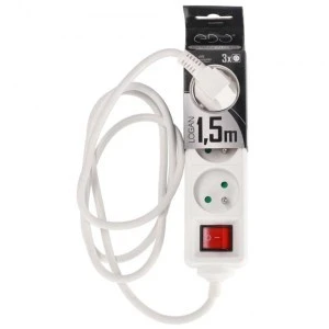 Przedłużacz domowy przenośny LOGAN White 3 - krotny z uziemieniem 1,5m z włącznikiem EDO777560