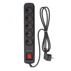 Przedłużacz elektryczny Listwa zasilająca antyprzepięciowa ARCON R5 na 5 gniazd 2P+Z z wyłącznikiem czarna 5m