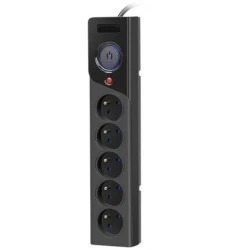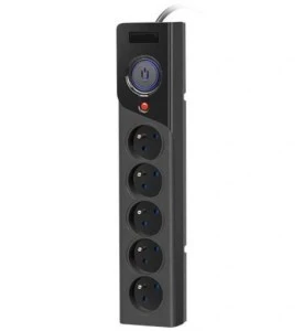 Listwa zasilająca posiada pięć gniazd sieciowych z uziemieniem wyposażonych w nowatorski system Child Protection, uniemożliwiający dostęp dzieci do elementów będących pod napięciem. Natomiast bezpiecznik automatyczny o charakterystyce zwłocznej 10A/250V umożliwi ponowne załączenie zasilania w przypadku wystąpienia awarii typu zwarcie/przeciążenie, po usunięciu przyczyny tego stanu.