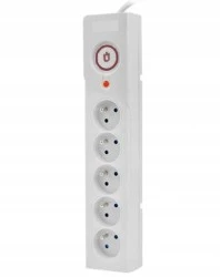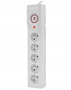 Listwa zasilająca posiada pięć gniazd sieciowych z uziemieniem wyposażonych w nowatorski system Child Protection, uniemożliwiający dostęp dzieci do elementów będących pod napięciem. Natomiast bezpiecznik automatyczny o charakterystyce zwłocznej 10A/250V umożliwi ponowne załączenie zasilania w przypadku wystąpienia awarii typu zwarcie/przeciążenie, po usunięciu przyczyny tego stanu.