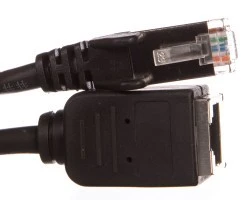 W ofercie firmy można znaleźć między innymi przedłużacz kabla krosowego, którego powyższa wersja została wykonana w kolorze czarnym. Produkt ten posiada dźwignię blokującą. Został wyposażony w profilowany przepust przeciwzgięciowy, który chroni aparaturę przed uszkodzeniami. Artykuł ma wtyk prosty oraz gniazdo proste. Złącze tego produktu oznaczono symbolem RJ45 8(8). Rozmiar AWG artykułu to 26. Kabel ma długość sięgającą 1 m.