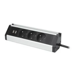 Narożna listwa zasilająca nablatowa 3×230V + 2×USB – czarna