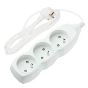 Uniwersalny przedłużacz z uziemieniem wykonany z tworzywa sztucznego.