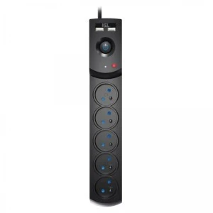 Przedłużacz przeciwprzepięciowy professional 5 gniazd 2xUSB 3m 10A 230V 2300W czarny W‑100044