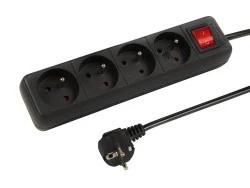 Przedłużacz sieciowy BLOW w kolorze czarnym z trzema gniazdami przeznaczony do użytku domowego. Przedłużacz pozwala podłączyć urządzenia, które są oddalone od gniazda elektrycznego. Produkt z jednej strony posiada 4 gniazda obrócone pod kątem oraz włącznik, a z drugiej pojedynczy kątowy wtyk sieciowy.