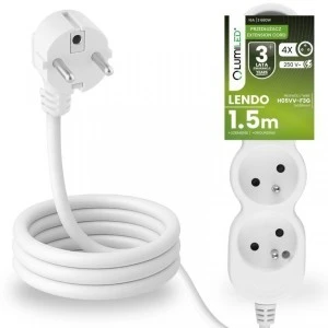 Przedłużacz Sieciowy Kabel z Uziemieniem Listwa Zasilająca 4 Gniazda 1.5m Biały Sznur Lendo Lumiled