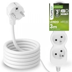 Przedłużacz Sieciowy Kabel z Uziemieniem Listwa Zasilająca 4 Gniazda 3m Biały Sznur Lendo Lumiled